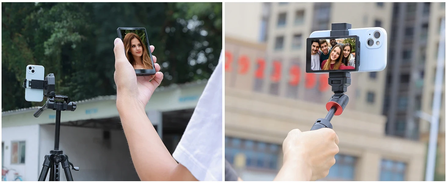 Phone Vlog Monitor Screen is the ultimate solution for capturing stunning selfies! With unique attachment system, this screen can easily attaches to your phone, providing a crystal-clear view of your phone. You can see the screen of your phone in real-time through our vlog screen. With our product, you can use your phone's rear camera for flawless selfie, vlog, live stream anytime, anywhere. Say goodbye to awkward angles and blurry shots.
