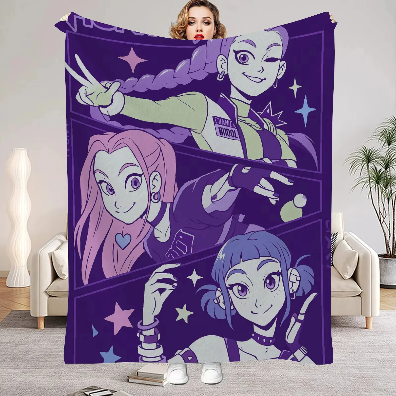 Kpop Anime Huntrix Themed Throw Blanket High Quality Printing Perfect For Fans And Collectors Flat Print Design Warm