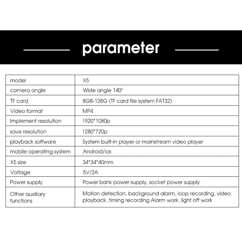 NEW X5 Mini Camera HD 1080P Compact WIFI Camera with Cyclic Recording Function Suitable for Outdoor Camping at Home Hot Sale